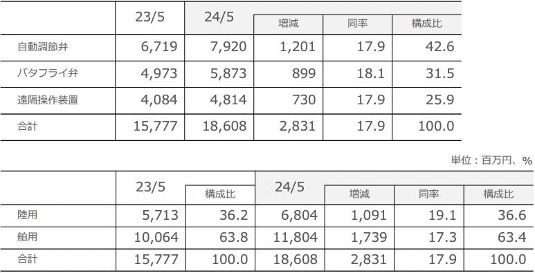 新造船需要の低迷やタンカー向け製品の減少により、売上高が減少傾向