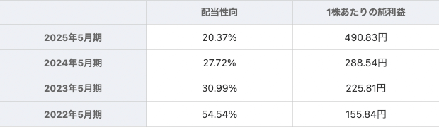 株主重視姿勢:配当性向がだんだん下がってるから株主還元微妙?